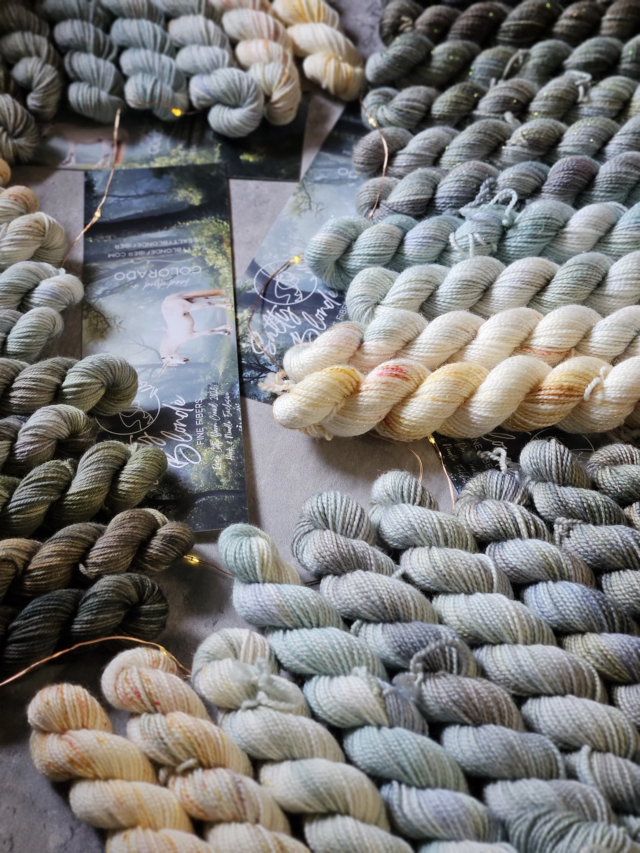 DK, 2-ply Sock, Cloud Worsted, & special Unicorn-themed crawl colorways